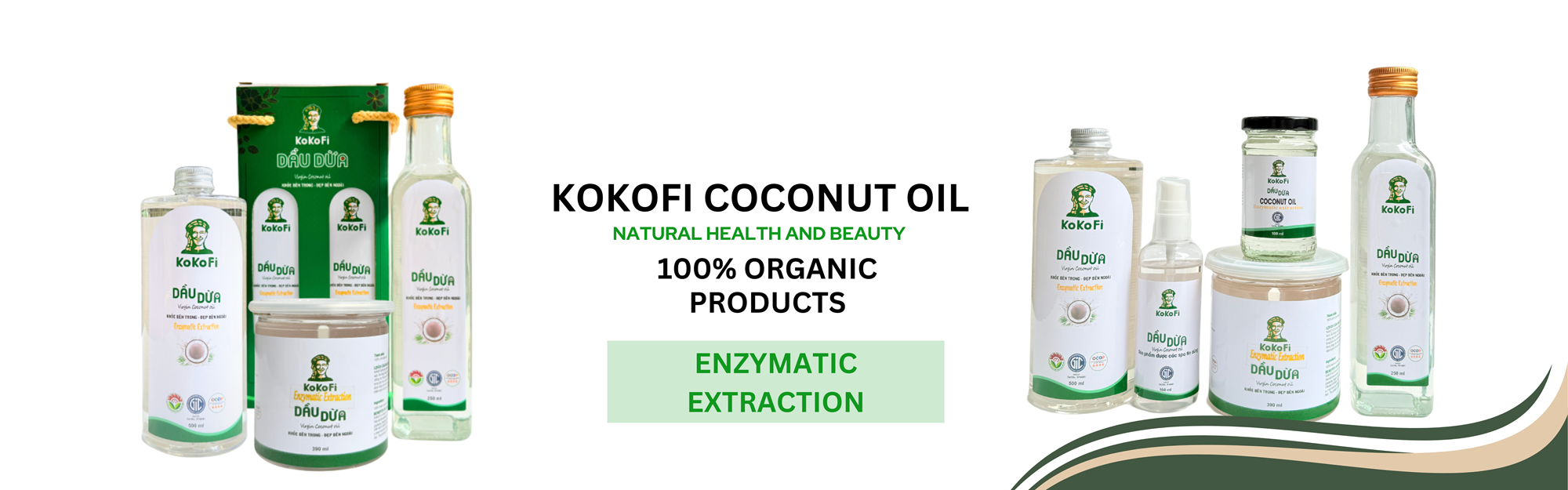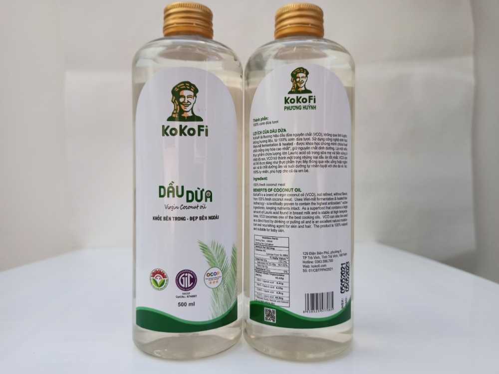 Dầu dừa KOKOFI là thương hiệu dầu dừa nguyên chất (VCO), được chiết xuất bởi enzyme kết hợp với lên men tự nhiên không qua tinh luyện. Theo các chuyên gia đánh giá phương pháp này dầu dừa được giữ nguyên thành phần dinh dưỡng và các acid béo trung bình có trong dừa. Là một siêu thực phẩm chứa lượng lớn axit Lauric có trong sữa mẹ và bền vững ở nhiệt độ cao. VCO trở thành một trong những loại dầu ăn tốt nhất.